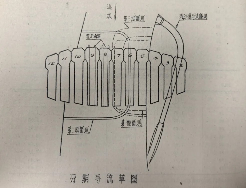 完成前期的關鍵準備工作,1956年9月工程開工建設,由治淮委員會勘測設計院組建磨子潭水庫工程指揮部負責施工。由于水庫位于大別山區淠河上游,地形上為峽谷,河床寬度僅有90米,且兩岸山坡陡峻,坡度在1:1至1:1.4之間,并有局部陡壁存在,因此清基爆炸數量大。按原定計劃,大壩開工前應當鑿通泄洪隧洞作為大壩施工期間導流之用,上下游做好圍壩,進行基礎開挖,然后再澆筑大壩混凝土。泄洪隧洞于1956年9月中旬開挖,而大壩要求1957年汛期就要起到攔洪作用,因此磨子潭水庫施工期限十分短促。為及時完成要求,磨子潭水庫工程指揮部結合當地的地質特點等,采用了分三期導流、分區爆炸、分區澆筑混凝土的方案,成功完成了約33萬立方米的混凝土澆筑。